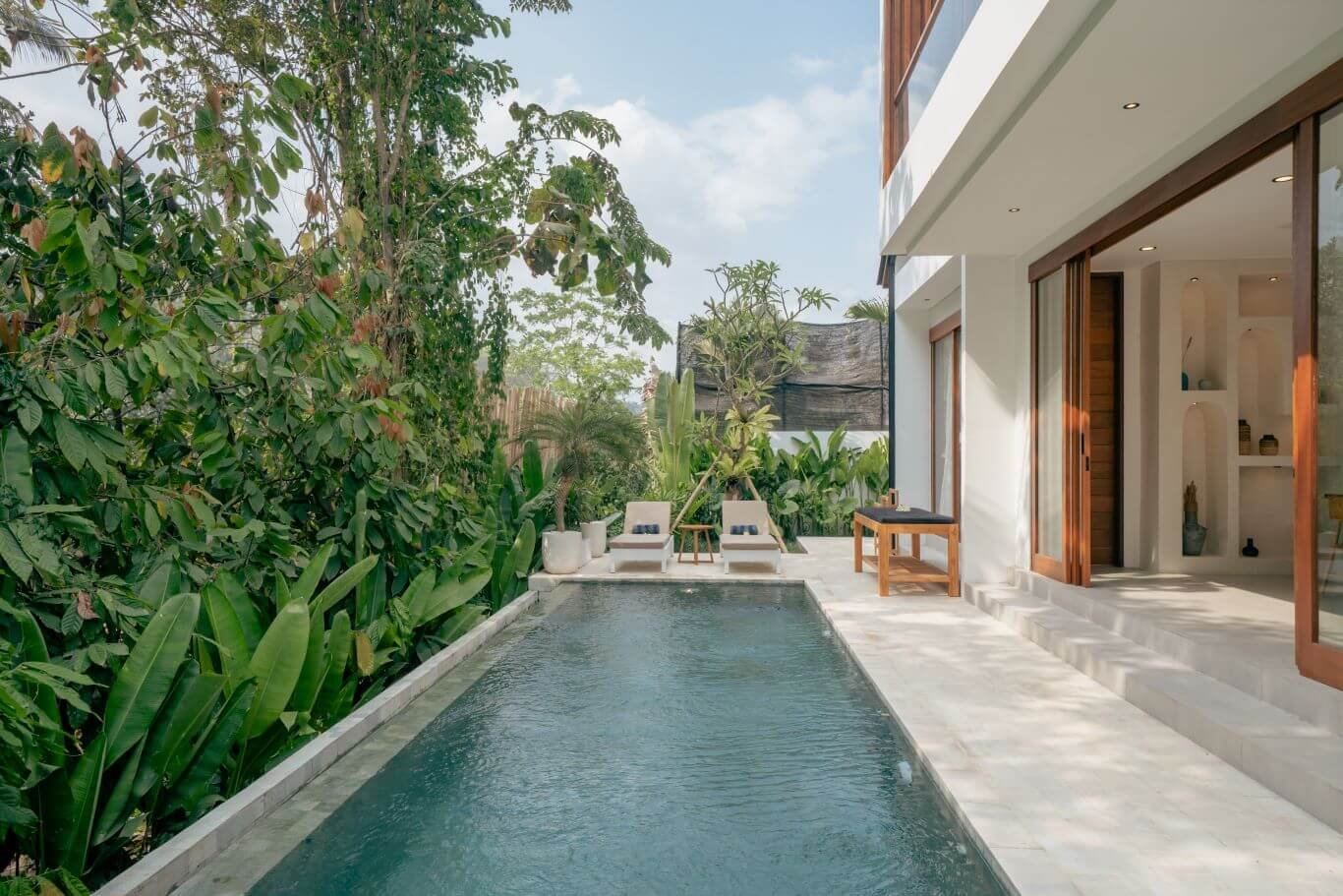 The villa boasts a spacious layout, featuring modern design elements that harmoniously integrate with the lush surroundings. Each bedroom is designed for comfort and relaxation, ensuring a restful stay. The open-plan living area provides a perfect space for entertaining or unwinding, with large windows that allow natural light to flood the interior, offering spectacular views of the jungle outside.