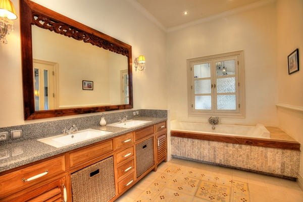 Featuring two elegantly appointed bedrooms, with the flexibility to transform two additional rooms, currently designed for spa treatments or office use, into extra bedrooms, the villa accommodates various needs and lifestyles. The interior design exudes colonial charm, complemented by contemporary furnishings and amenities, ensuring a comfortable and luxurious living experience.