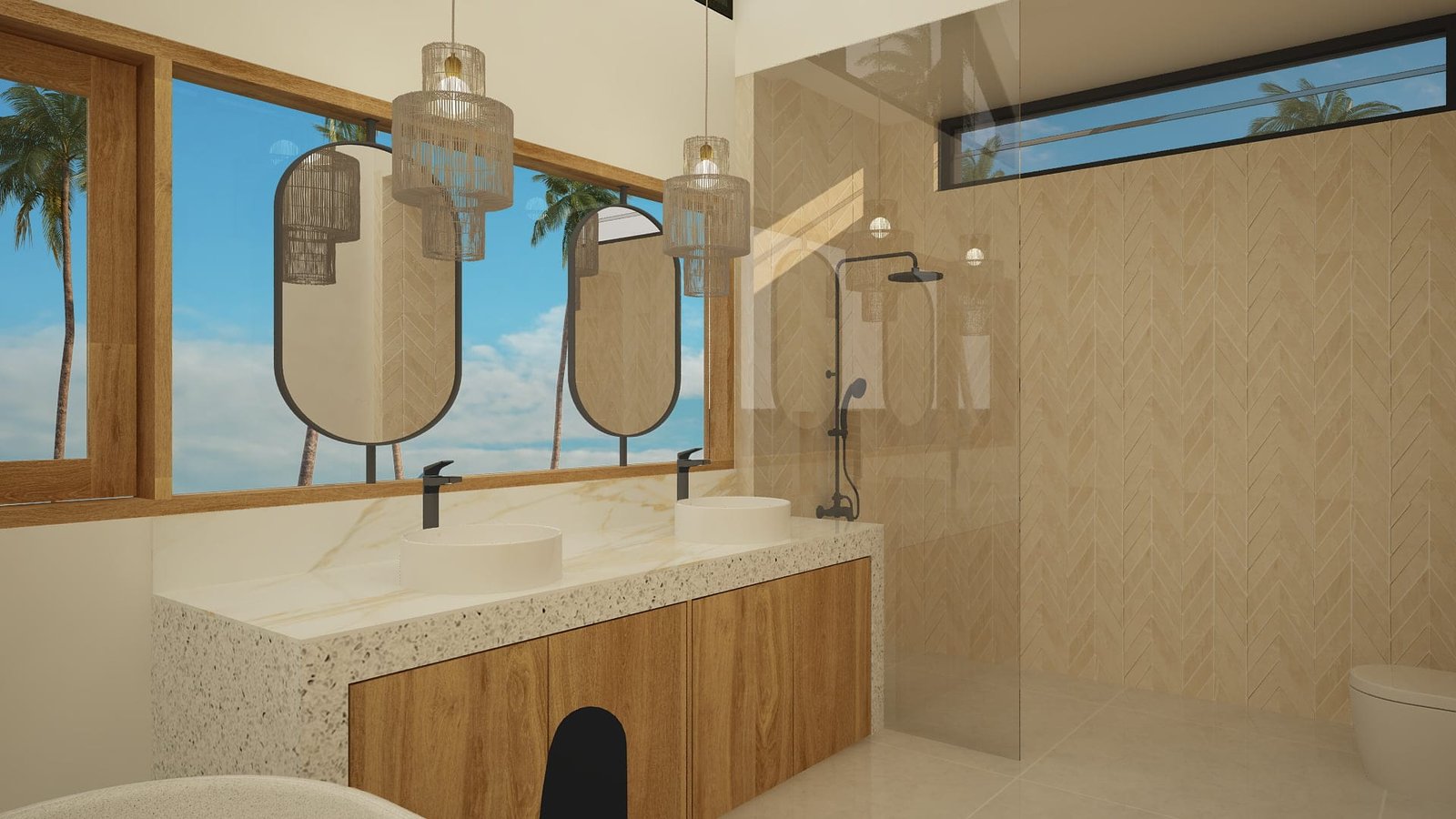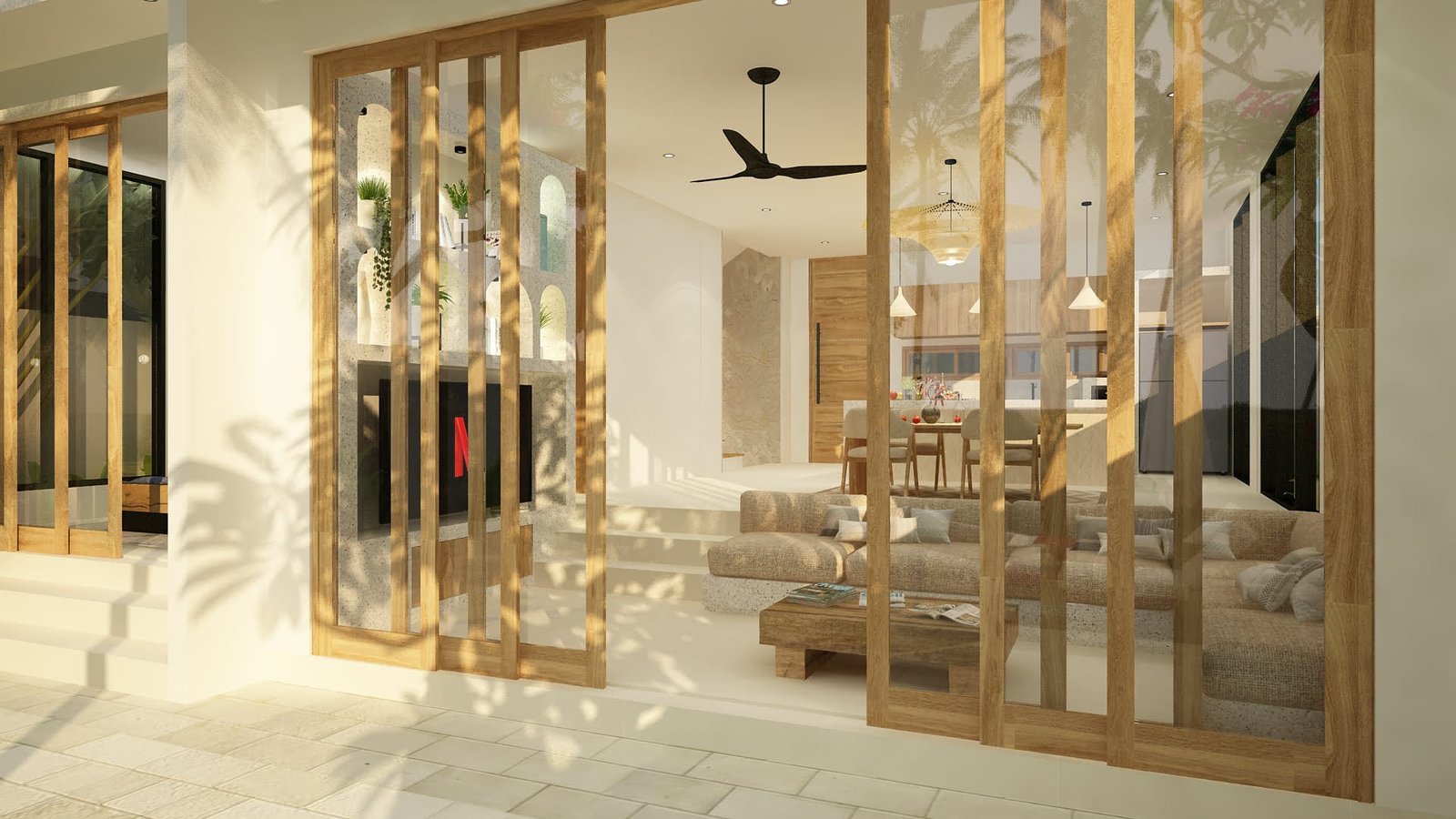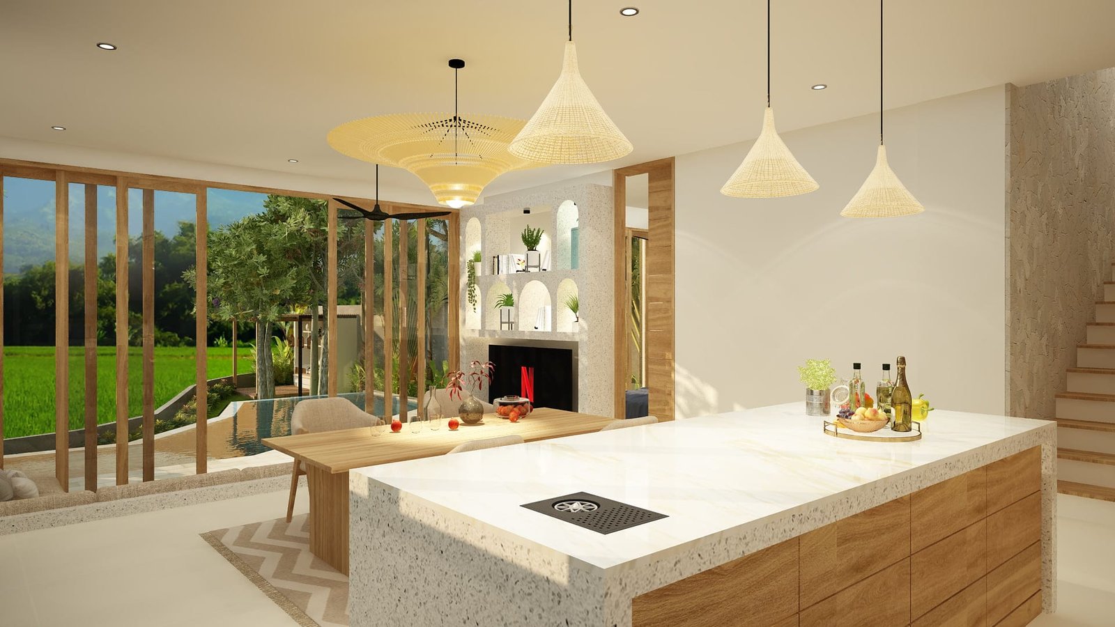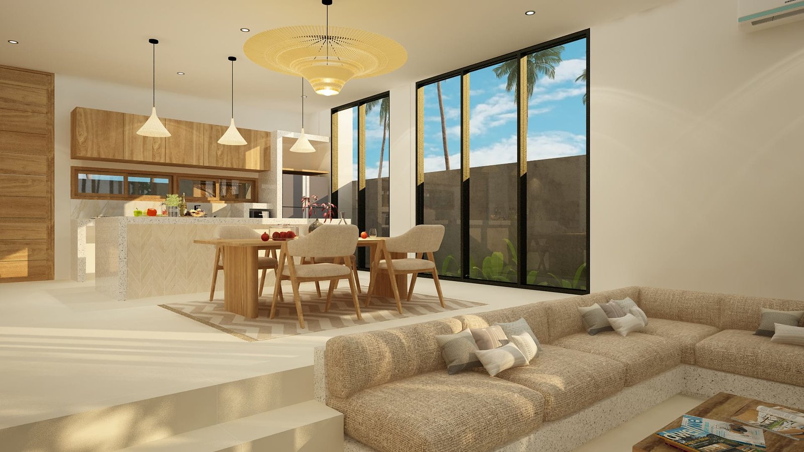 Crafted with high-quality materials and finishes, the interior of this home reflects a sophisticated palette that complements its tropical surroundings. Stone, wood, and natural textures are thoughtfully integrated to create an atmosphere of refined elegance that is both warm and inviting.